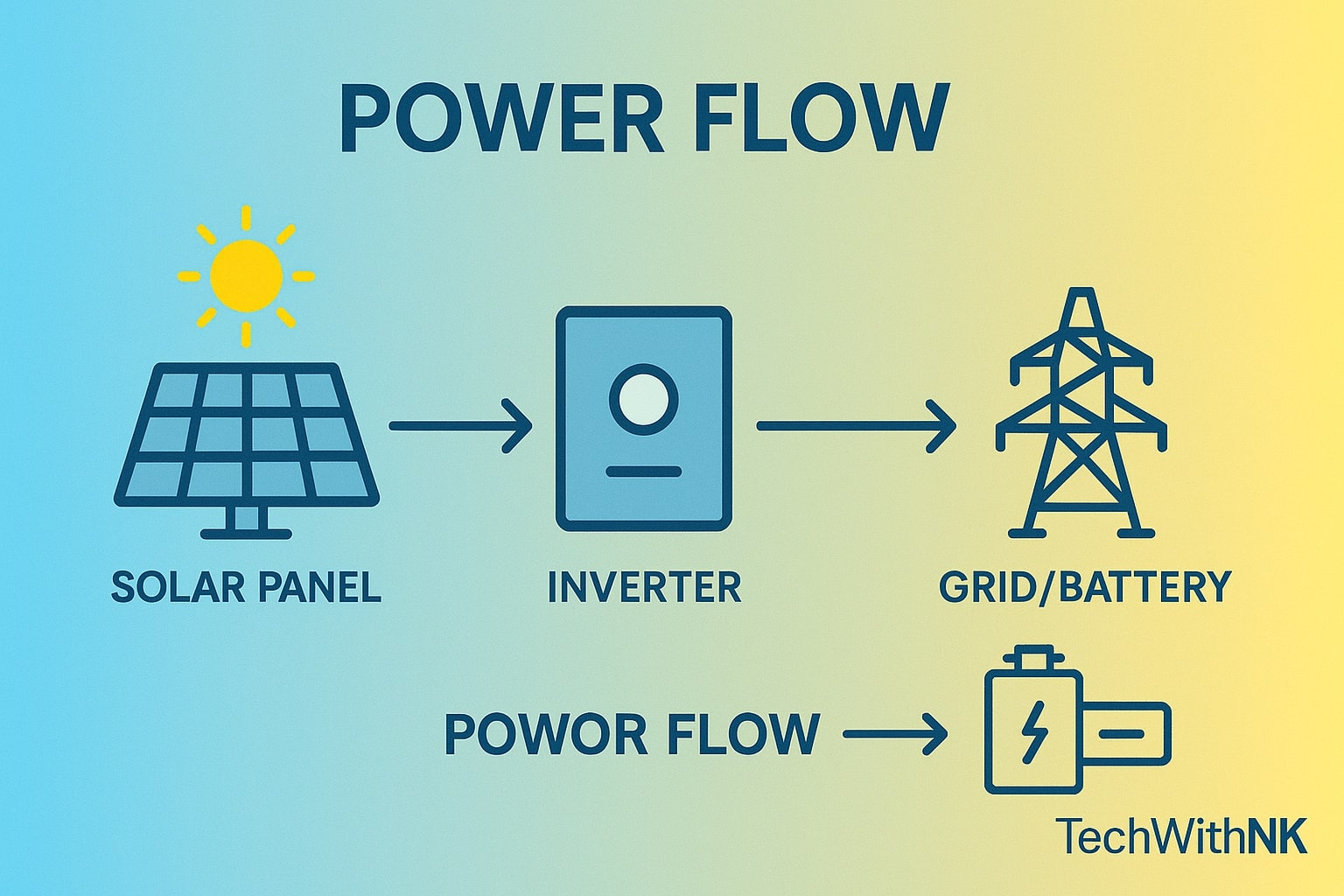 2. Solar Inverter converts DC into AC (Alternating Current) – usable by household appliances.